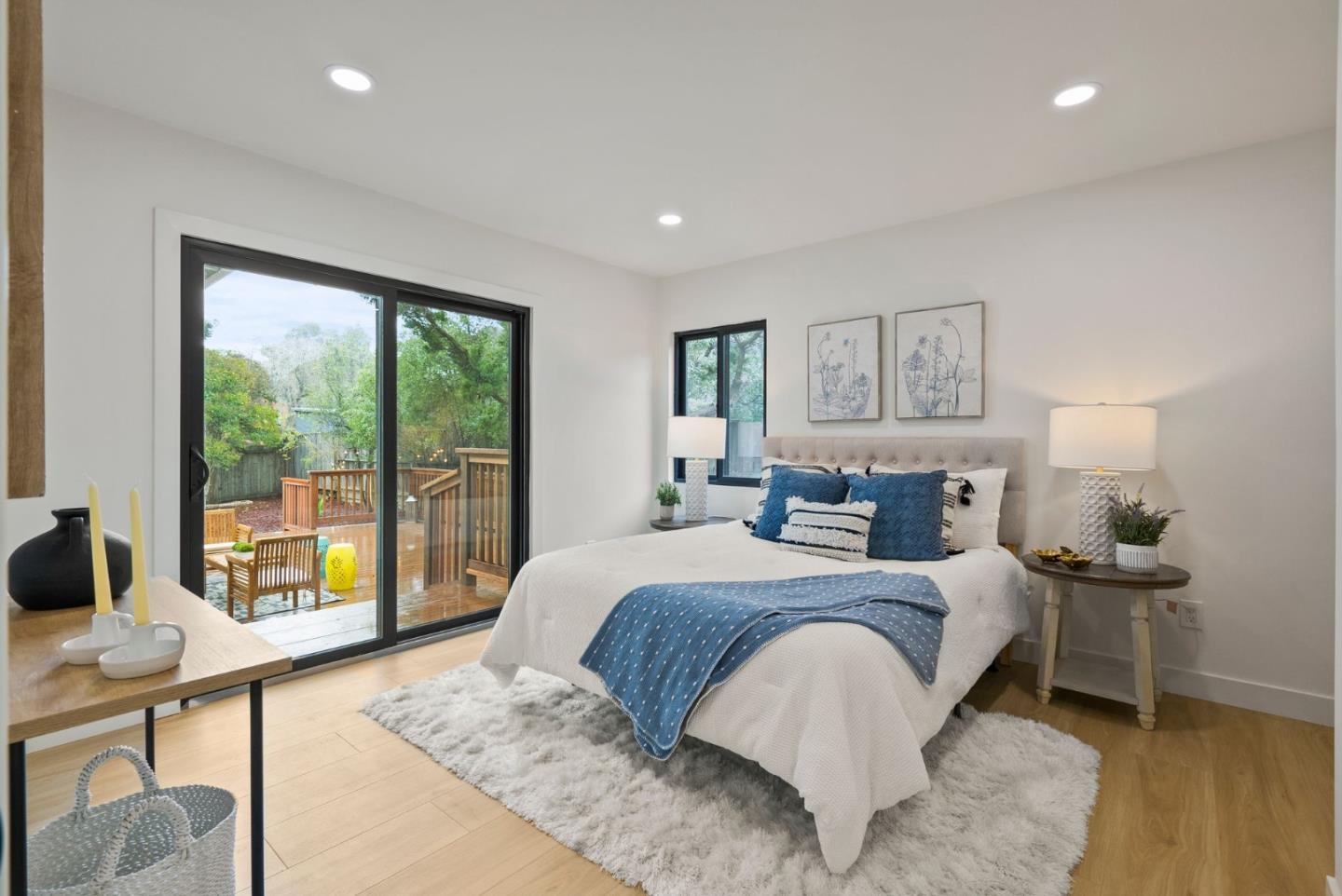 Captivating 4-bed 3-bath home on the border of desirable White Oaks neighborhood | Walking distance to Brittan Acres and White Oaks elementary, Central Middle, Burton park and San Carlos downtown | Existing house remodeled with permit and includes two master suites | Quartz countertop kitchen with new Bosch 5-burner gas range, Bosch refrigerator and dishwasher and new cabinets | Electrolux W/D | New garage door and opener | Nest thermostat | Back and side yard with new concrete patio for entertaining, complete redwood deck for outdoor living and large yard with flagstone patio | New hardwood floors | New recessed lights | New water-saving fixtures and bathroom vanities | New Andersen windows | New skylights and sky tunnels | New concrete driveway